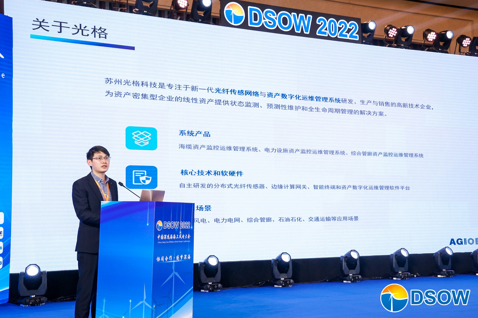 光格科技自創(chuàng )立以來(lái)即專(zhuān)注于新一代光纖傳感網(wǎng)絡(luò )與資產(chǎn)數字化運維管理系統的研發(fā)和產(chǎn)業(yè)化,是該領(lǐng)域國內早期開(kāi)拓者之一。此次高峰論壇會(huì )上,光格科技不僅受邀做了《海纜監控運維實(shí)踐與展望》專(zhuān)題演講報告,同時(shí)還在企業(yè)展示區內為大家詳細展示了海纜監測系統的綜合解決方案。