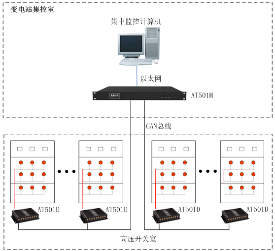 電網(wǎng)高壓開(kāi)關(guān)柜溫度監測系統由光纖測溫儀、光纖傳感器、集中監控主機、監測軟件及其它配件組合而成。系統采用光纖接觸式測溫原理,針對高壓開(kāi)關(guān)柜進(jìn)線(xiàn)銅排、觸頭、出線(xiàn)電纜接頭等位置實(shí)施在線(xiàn)溫度監測,溫度或者溫升出現異常時(shí)將實(shí)時(shí)告警,防止火災的發(fā)生,保障開(kāi)關(guān)柜設備安全運行。