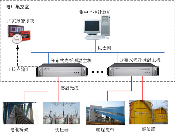 電廠(chǎng)火災探測系統主要由線(xiàn)型光纖感溫火災探測器及相應的附件組成,針對電廠(chǎng)廠(chǎng)區內電纜橋架、電纜夾層、電纜溝、變壓器、輸煤皮帶、油罐等易燃易爆區域實(shí)施溫度監測和火災探測,全天候實(shí)時(shí)監控,為提高發(fā)電企業(yè)的安全運行管理和檢修管理水平帶來(lái)幫助。